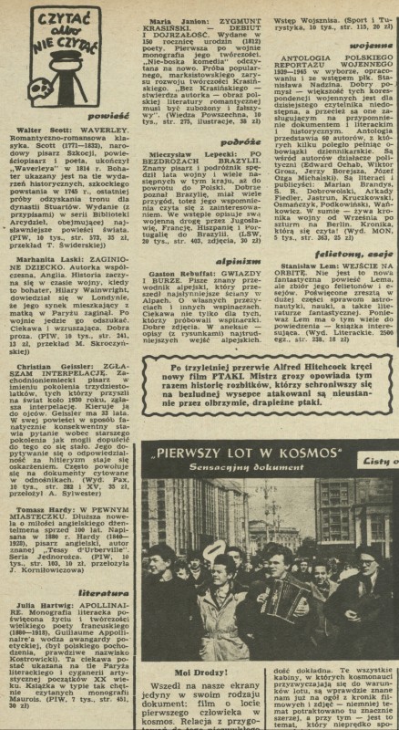 Archiwum / Czytać albo nie czytać? nr 883 (10/1962) 36859/123969 Podziel się Tytuł Czytać albo nie czytać? Rubryka Czytać albo nie czytać? Artykuł z numeru 883 (10/1962) Data wydania 11 marca 1962