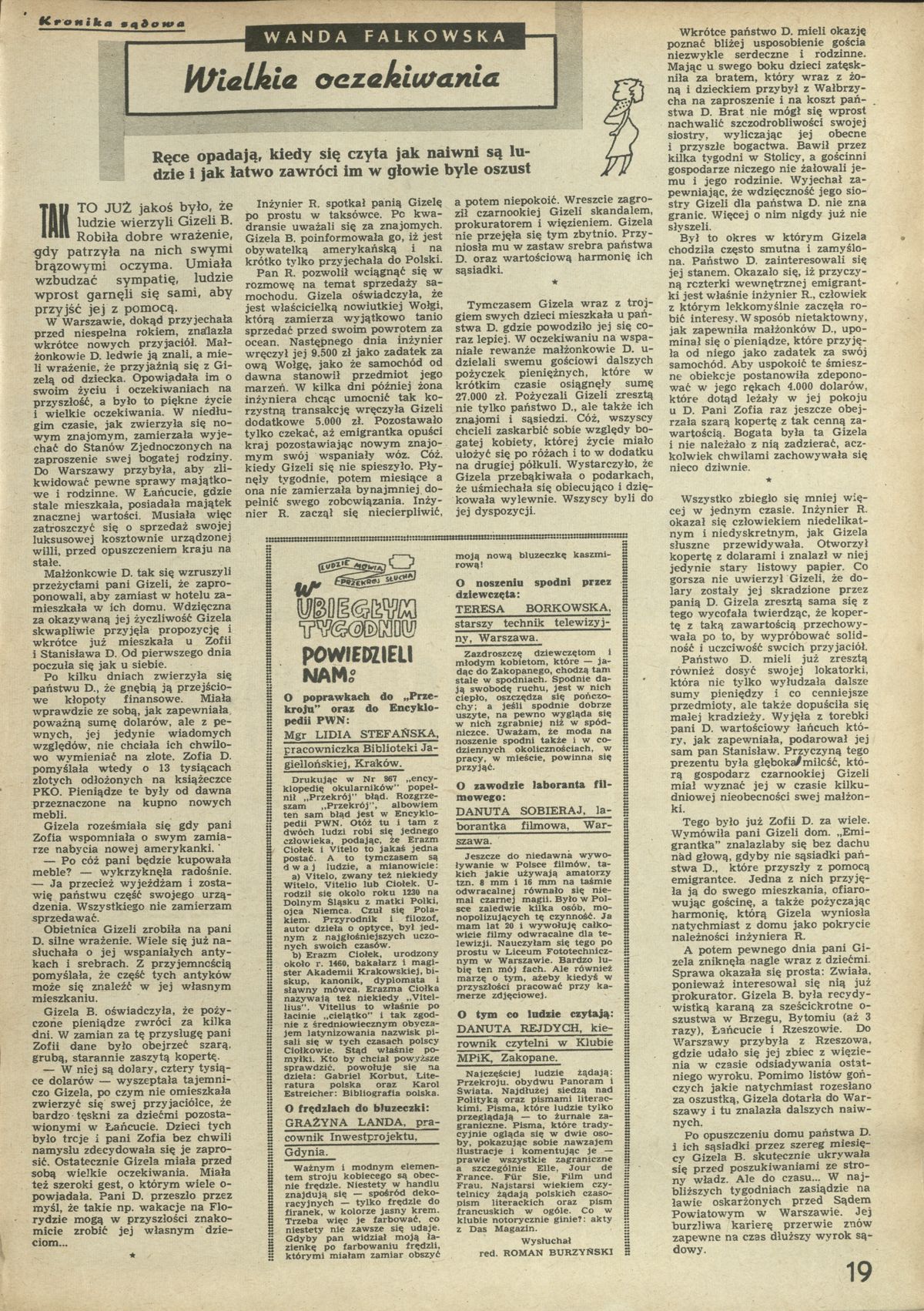 Archiwum / Kronika sądowa nr 883 (10/1962) 30/35 Podziel się Tytuł Wielkie oczekiwania Autor Wanda Falkowska Rubryka Kronika sądowa Artykuł z numeru 883 (10/1962) Data wydania 11 marca 1962 Tagi prawo