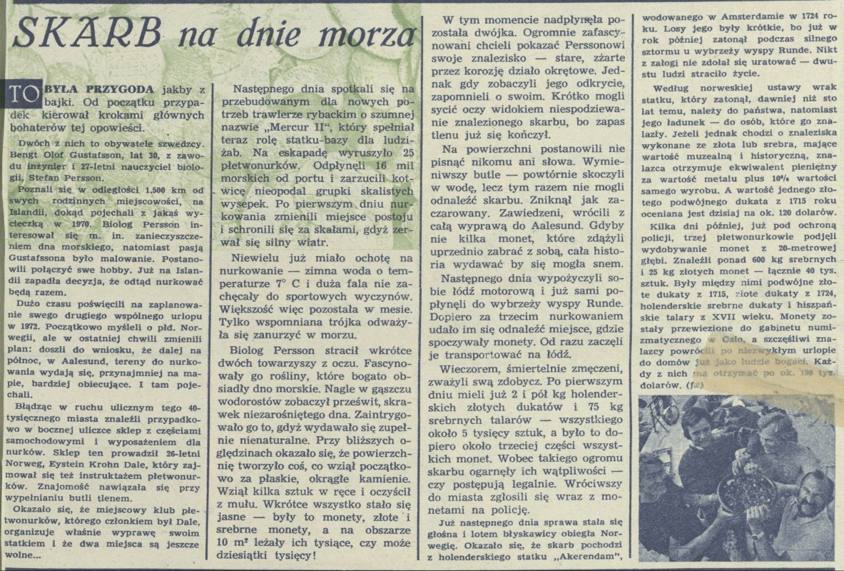 Archiwum / Artykuł nr 1451 (04/1973) 59590/123969 Podziel się Tytuł Skarb na dnie morza Kategoria Artykuł Artykuł z numeru 1451 (4/1973) Data wydania 28 stycznia 1973