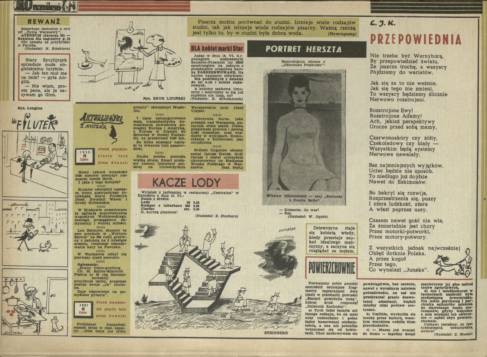 Archiwum / Rozmaitości [old] nr 900 (27/1962) 74/408 Podziel się Tytuł Przepowiednia Autor Ludwik Jerzy Kern Rubryka Rozmaitości [old] Artykuł z numeru 900 (27/1962) Data wydania 8 lipca 1962