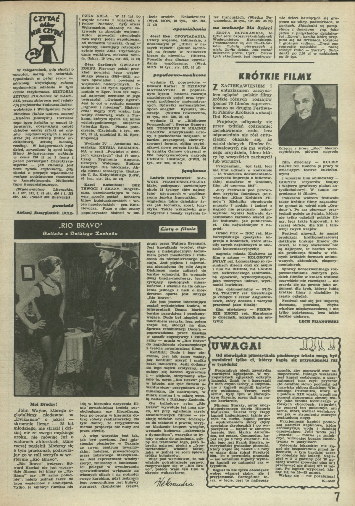 Archiwum / Listy o filmie nr 901 (28/1962) 37685/123969 Podziel się Tytuł „Rio Bravo” Autor Aleksandra Rubryka Listy o filmie Artykuł z numeru 901 (28/1962) Data wydania 15 lipca 1962
