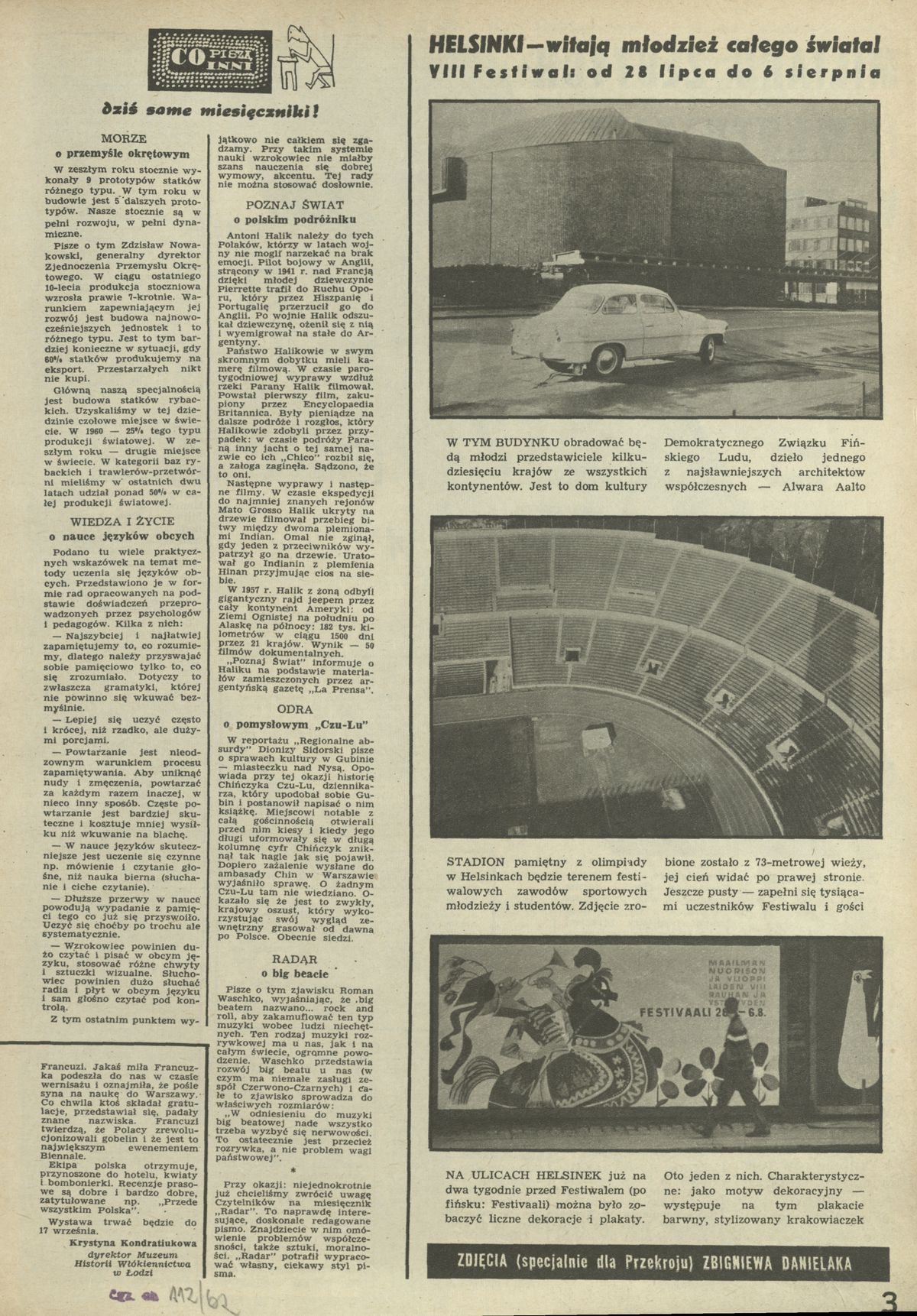 Archiwum / Fotoreportaż nr 903 (30/1962) 37742/123969 Podziel się Tytuł Helsinki - witają młodzież całego świata Autor Danielak Kategoria Fotoreportaż Artykuł z numeru 903 (30/1962) Data wydania 29 lipca 1962