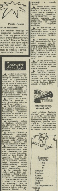 Archiwum / Jednym zdaniem nr 773 (05/1960) 112/120 Podziel się Tytuł Jednym zdaniem Rubryka Jednym zdaniem Artykuł z numeru 773 (5/1960) Data wydania 31 stycznia 1960
