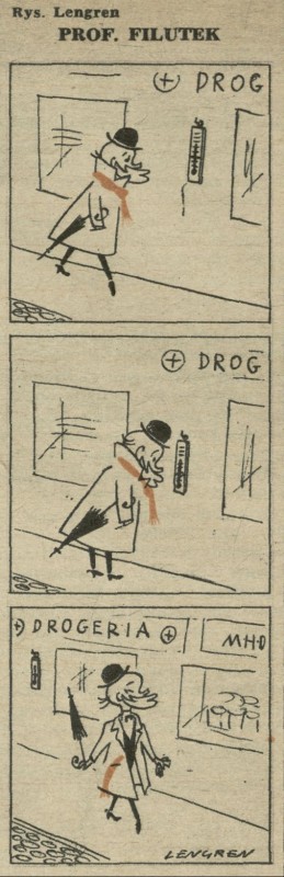 Archiwum / Profesor Filutek nr 308 (10/1951) 09/52 Podziel się Tytuł Prof. Filutek Autor Zbigniew Lengren Rubryka Profesor Filutek Artykuł z numeru 308 (10/1951) Data wydania 4 marca 1951 Tagi żart rysunkowy temperatura wiosna