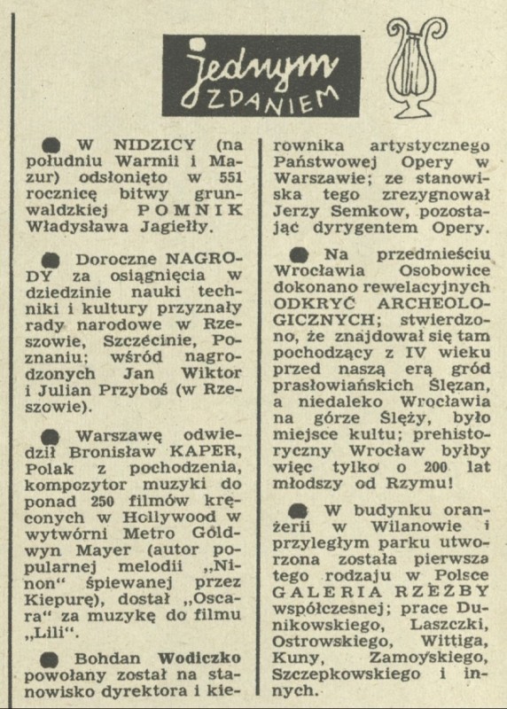 Archiwum / Jednym zdaniem nr 851 (31/1961) 271/402 Podziel się Tytuł Jednym zdaniem Rubryka Jednym zdaniem Artykuł z numeru 851 (31/1961) Data wydania 30 lipca 1961