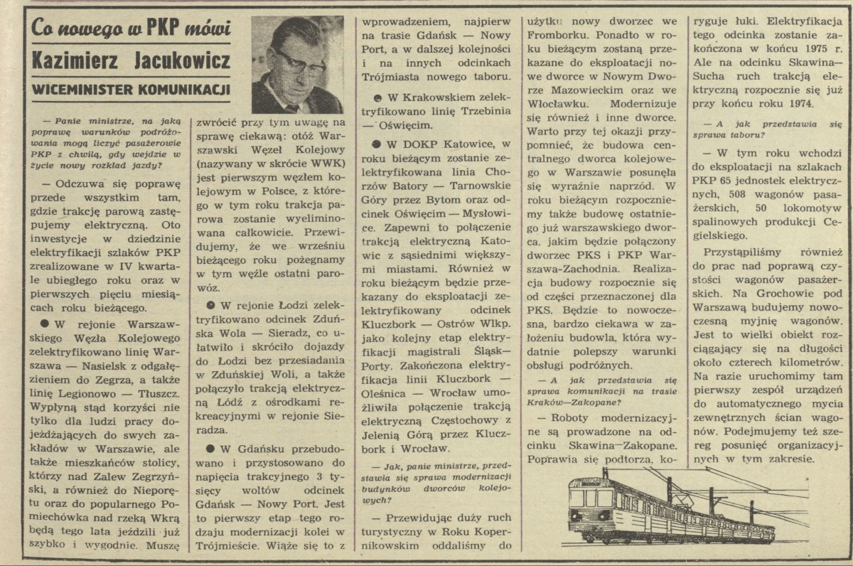 Archiwum / Artykuł nr 1469 (22/1973) 31/47 Podziel się Tytuł Co nowego w PKP mówi Kazimierz Jacukowicz wiceminister komunikacji Kategoria Artykuł Artykuł z numeru 1469 (22/1973) Data wydania 3 czerwca 1973 Tagi transport komunikacja