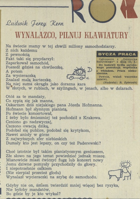 Archiwum / Rozmaitości [old] nr 1469 (22/1973) 60681/123969 Podziel się Tytuł Wynalazco, pilnuj klawiatury Autor Ludwik Jerzy Kern Rubryka Rozmaitości [old] Artykuł z numeru 1469 (22/1973) Data wydania 3 czerwca 1973