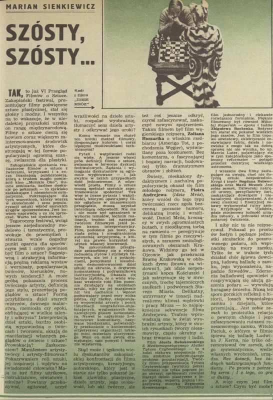 Archiwum / Artykuł nr 1463 (16/1973) 63686/123969 Podziel się Tytuł Szósty, szósty... Autor Marian Sienkiewicz Kategoria Artykuł Artykuł z numeru 1463 (16/1973) Data wydania 22 kwietnia 1973 Tagi film