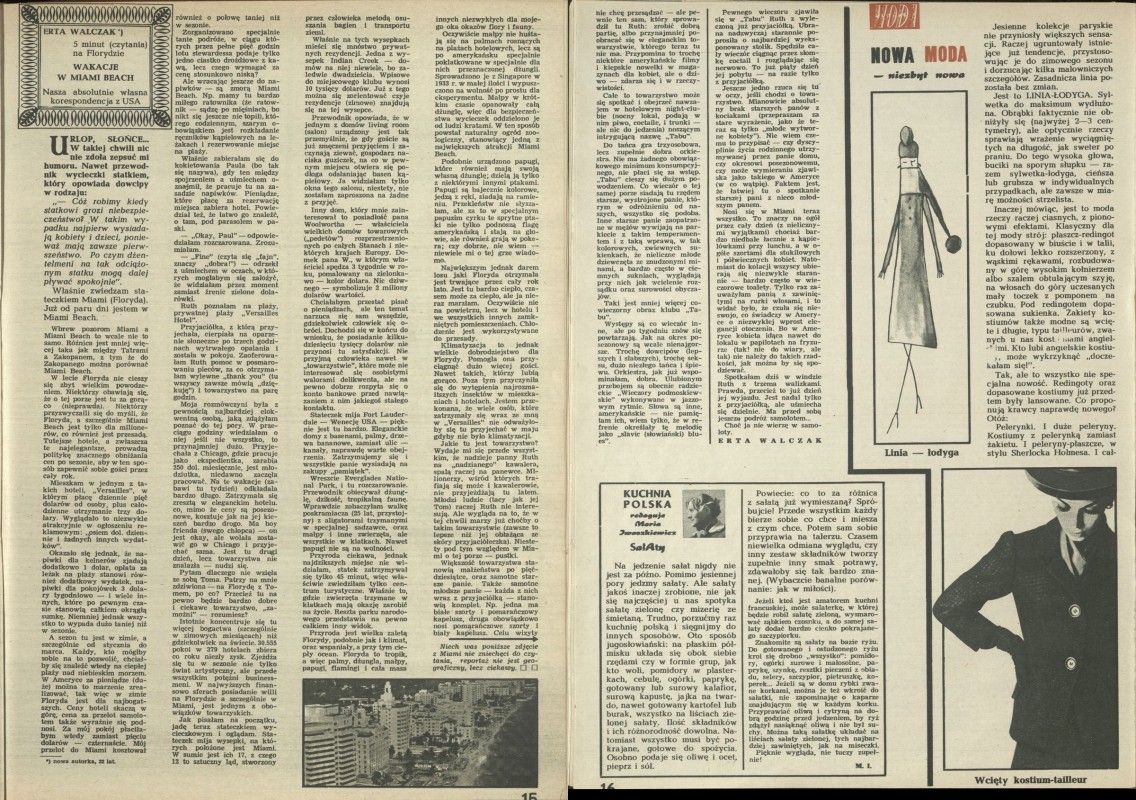 Archiwum / korespondencja własna "Przekroju" nr 911 (38/1962) 150/210 Podziel się Tytuł Wakacje w Miami Beach Autor Erta Walczak Rubryka korespondencja własna "Przekroju" Artykuł z numeru 911 (38/1962) Data wydania 23 września 1962 Tagi USA Miami Beach Floryda wakacje