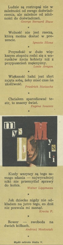 Archiwum / Myśli nr 1476 (29/1973) 14/30 Podziel się Tytuł Myśli Autor Stella Varcaby Rubryka Myśli Artykuł z numeru 1476 (29/1973) Data wydania 22 lipca 1973