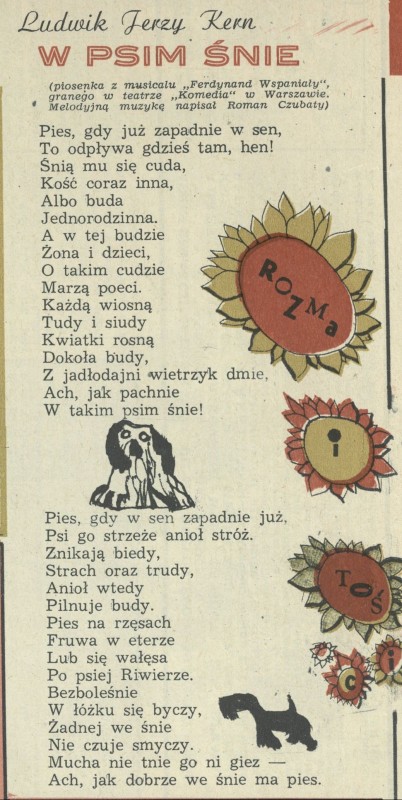 Archiwum / Rozmaitości [old] nr 1476 (29/1973) 61092/123969 Podziel się Tytuł W psim śnie Autor Ludwik Jerzy Kern Rubryka Rozmaitości [old] Artykuł z numeru 1476 (29/1973) Data wydania 22 lipca 1973