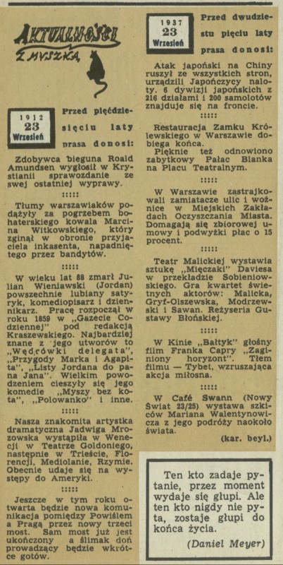 Archiwum / Aktualności z myszką nr 911 (38/1962) 16/20 Podziel się Tytuł Aktualności z myszką Autor Karolina Beylin Rubryka Aktualności z myszką Artykuł z numeru 911 (38/1962) Data wydania 23 września 1962 Tagi prasa wiadomości wydarzenia przeszłość