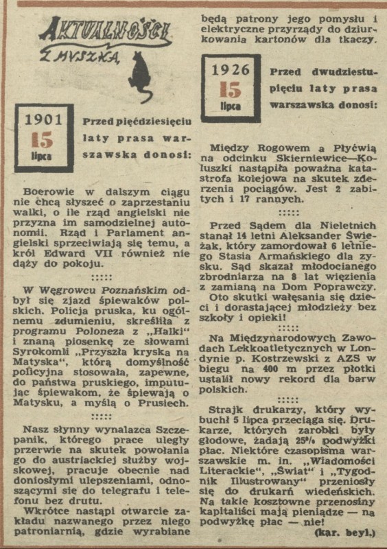 Archiwum / Aktualności z myszką nr 327 (29/1951) 71/487 Podziel się Tytuł Aktualności z myszką Rubryka Aktualności z myszką Artykuł z numeru 327 (29/1951) Data wydania 15 lipca 1951