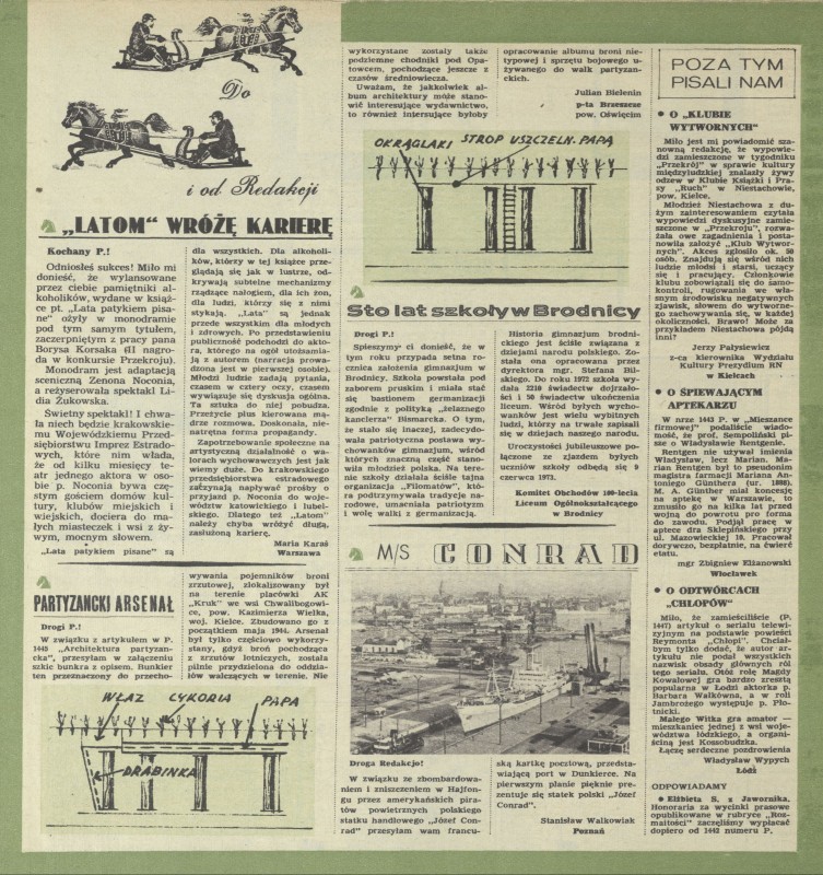 Archiwum / Listy do i od redakcji nr 1450 (03/1973) 22/246 Podziel się Tytuł Listy do i od redakcji Rubryka Listy do i od redakcji Artykuł z numeru 1450 (3/1973) Data wydania 21 stycznia 1973