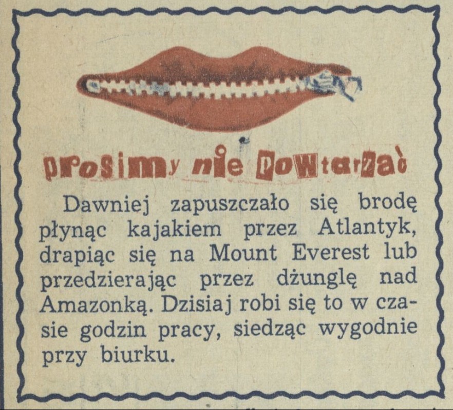 Archiwum / Prosimy nie powtarzać nr 1467 (20/1973) 223/230 Podziel się Tytuł Prosimy nie powtarzać Rubryka Prosimy nie powtarzać Artykuł z numeru 1467 (20/1973) Data wydania 20 maja 1973