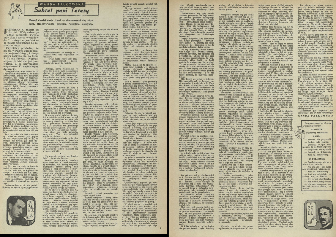 Archiwum / Kronika sądowa nr 923-25 (50-52/1962) 82/313 Podziel się Tytuł Sekret pani Teresy Autor Wanda Falkowska Rubryka Kronika sądowa Artykuł z numeru 923-25 (50/1962) Data wydania 23 grudnia 1962