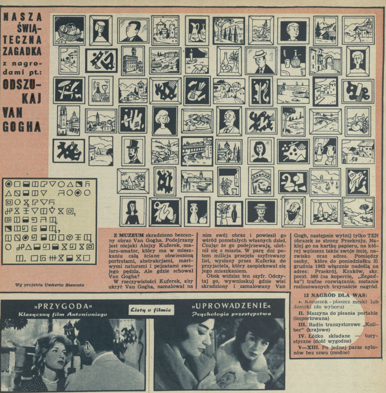 Archiwum / Konkurs nr 923-25 (50-52/1962) 16/25 Podziel się Tytuł Świąteczna zagadka: Odszukaj Van Gogha Autor Redakcja Rubryka Konkurs Artykuł z numeru 923-25 (50/1962) Data wydania 23 grudnia 1962
