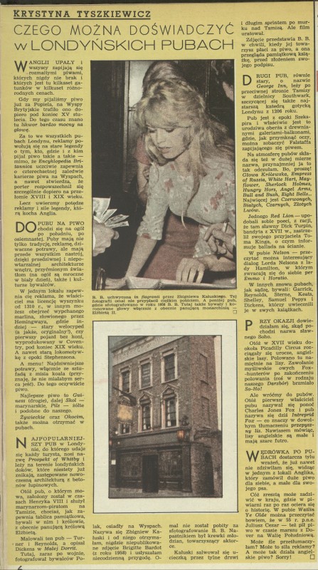 Archiwum / Felieton nr 1477 (30/1973) 61106/123969 Podziel się Tytuł Czego można doświadczyć w londyńskich pubach? Autor Krystyna Tyszkiewicz Kategoria Felieton Artykuł z numeru 1477 (30/1973) Data wydania 29 lipca 1973 Tagi Anglia puby