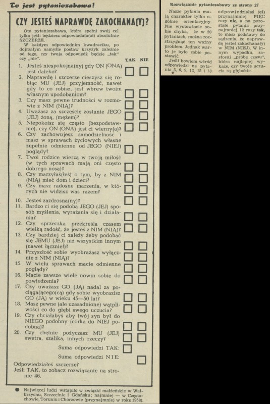 Archiwum / Rozrywka nr 782-84 (14-16/1960) 438/543 Podziel się Tytuł Czy jesteś naprawdę zakochany? Kategoria Rozrywka Artykuł z numeru 782-84 (14/1960) Data wydania 17 kwietnia 1960 Tagi psychozabawa