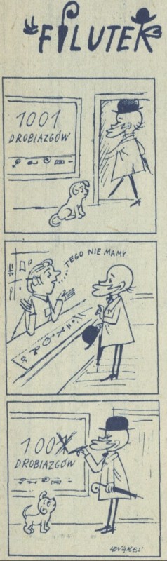 Archiwum / Profesor Filutek nr 1496 (49/1973) 47/50 Podziel się Tytuł Prof. Filutek Autor Zbigniew Lengren Rubryka Profesor Filutek Artykuł z numeru 1496 (49/1973) Data wydania 9 grudnia 1973 Tagi żart rysunkowy pies Filuś 1001 drobiazgów 100 drobiazgów