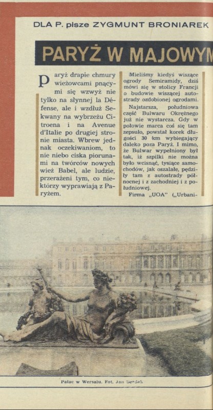 Archiwum / Korespondencja nr 1465 (18/1973) 38/63 Podziel się Tytuł Paryż w majowym słońcu Autor Zygmunt Broniarek Kategoria Korespondencja Artykuł z numeru 1465 (18/1973) Data wydania 6 maja 1973 Tagi Paryż la Defense