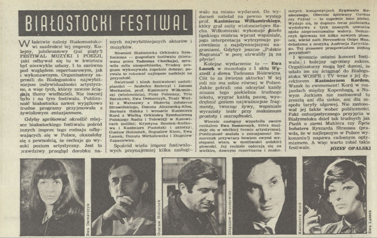 Archiwum / Relacja nr 1465 (18/1973) 33/75 Podziel się Tytuł Białostocki festiwal Autor Józef Opalski Kategoria Relacja Artykuł z numeru 1465 (18/1973) Data wydania 6 maja 1973 Tagi festiwal Białystok festiwal muzyki i poezji