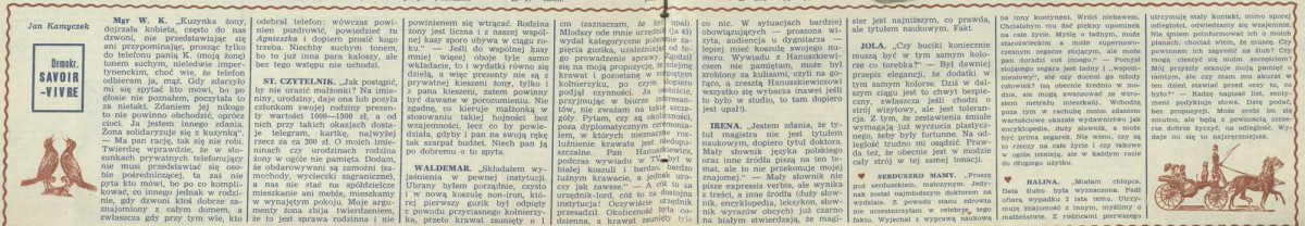 Archiwum / Demokratyczny savoir-vivre nr 1487 (40/1973) 1257/1625 Podziel się Tytuł Demokratyczny savoir vivre Autor Jan Kamyczek Rubryka Demokratyczny savoir-vivre Artykuł z numeru 1487 (40/1973) Data wydania 7 października 1973 Tagi dobre wychowanie kultura obyczaje bon-ton