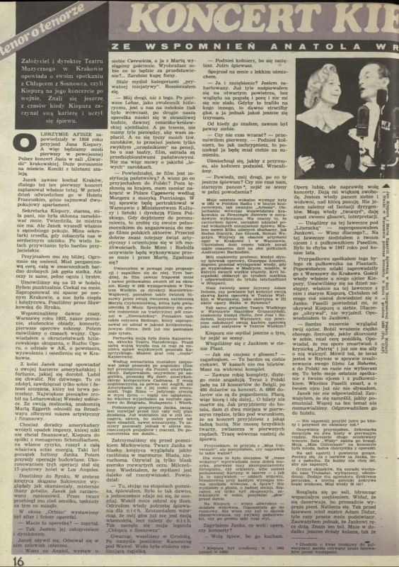 Archiwum / Felieton nr 1483 (36/1973) 06/10 Podziel się Tytuł Koncer kiepury Autor Anatol Wroński Kategoria Felieton Artykuł z numeru 1483 (36/1973) Data wydania 9 września 1973 Tagi teatr
