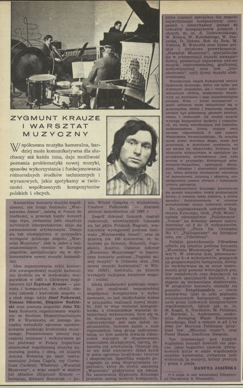 Archiwum / Artykuł nr 1478 (31/1973) 38/71 Podziel się Tytuł Zygmunt Krauze i warsztat muzyczny Autor Danuta Jasińska Kategoria Artykuł Artykuł z numeru 1478 (31/1973) Data wydania 5 sierpnia 1973 Tagi muzyka