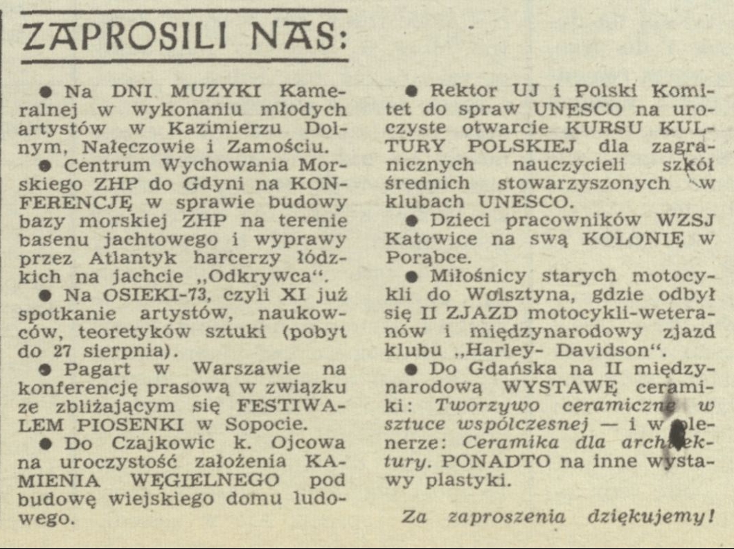 Archiwum / Zaprosili nas nr 1480 (33/1973) 22/31 Podziel się Tytuł Zaprosili nas Rubryka Zaprosili nas Artykuł z numeru 1480 (33/1973) Data wydania 19 sierpnia 1973