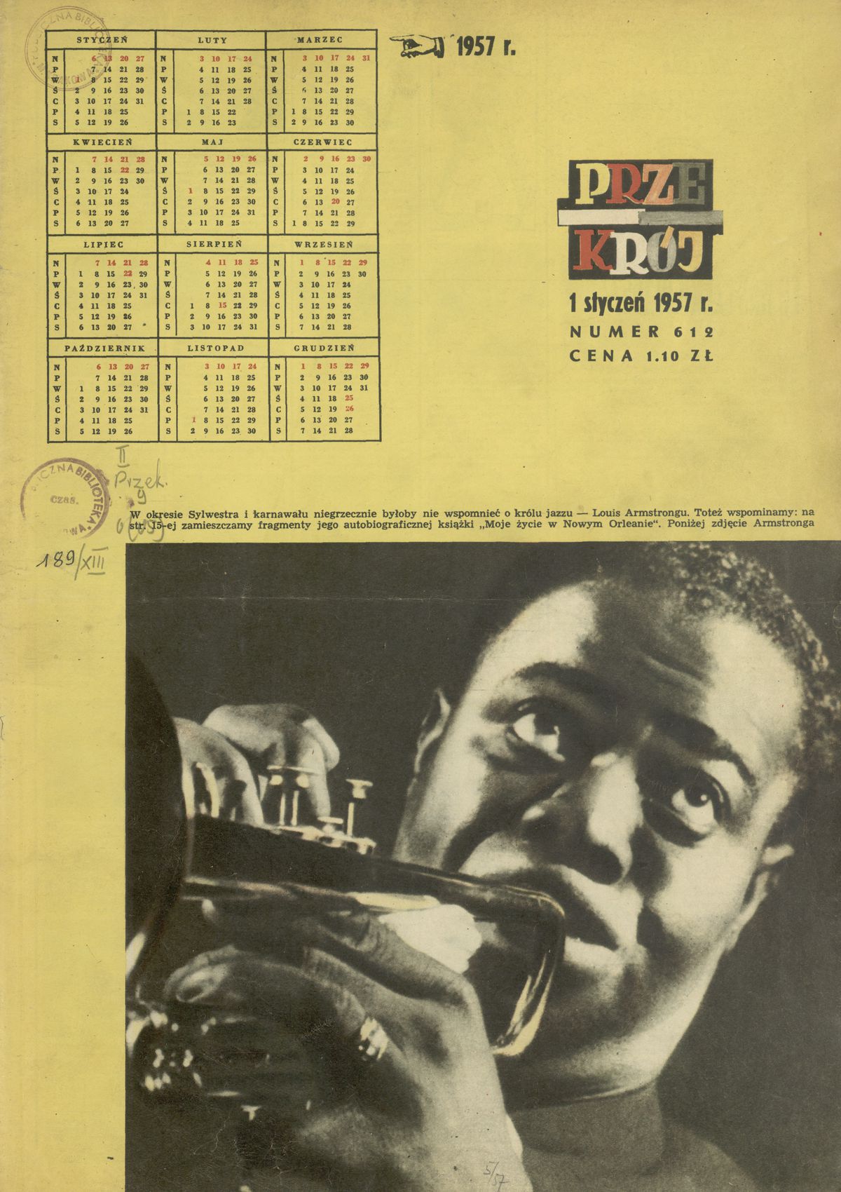 Archiwum / Okładki Przekroju nr 612 (01/1957) 52/3043 Podziel się Tytuł Okładka Rubryka Okładki Przekroju Artykuł z numeru 612 (1/1957) Data wydania 1 stycznia 1957 Tagi Louis Armstrong jazz kalendarz