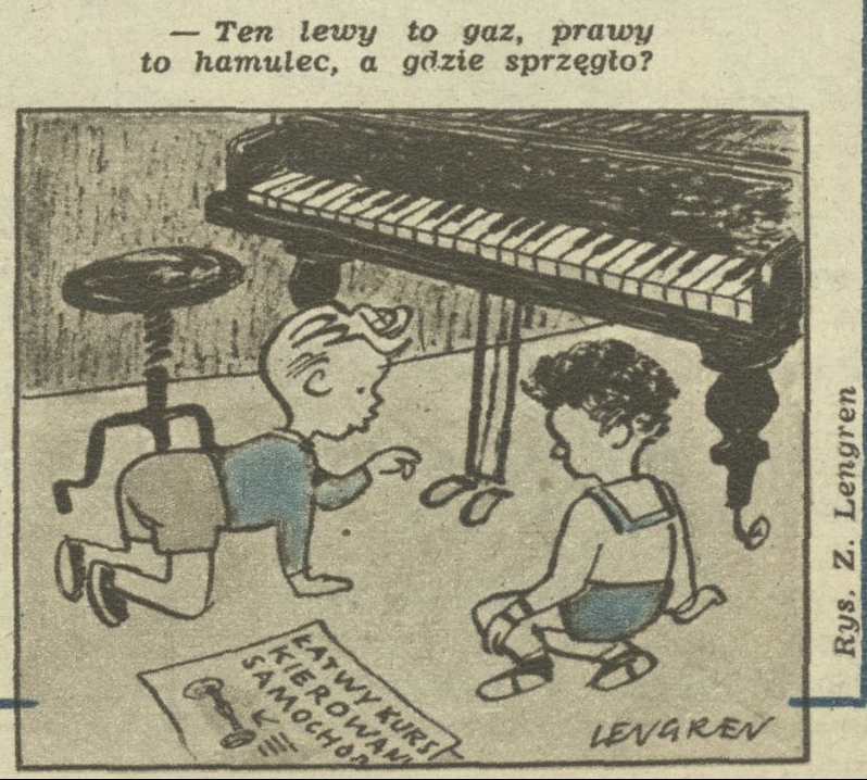 Archiwum / Rysunek nr 377 (26/1952) 38/78 Podziel się Tytuł Łatwy kurs kierowania samochodem Autor Zbigniew Lengren Kategoria Rysunek Artykuł z numeru 377 (26/1952) Data wydania 29 czerwca 1952