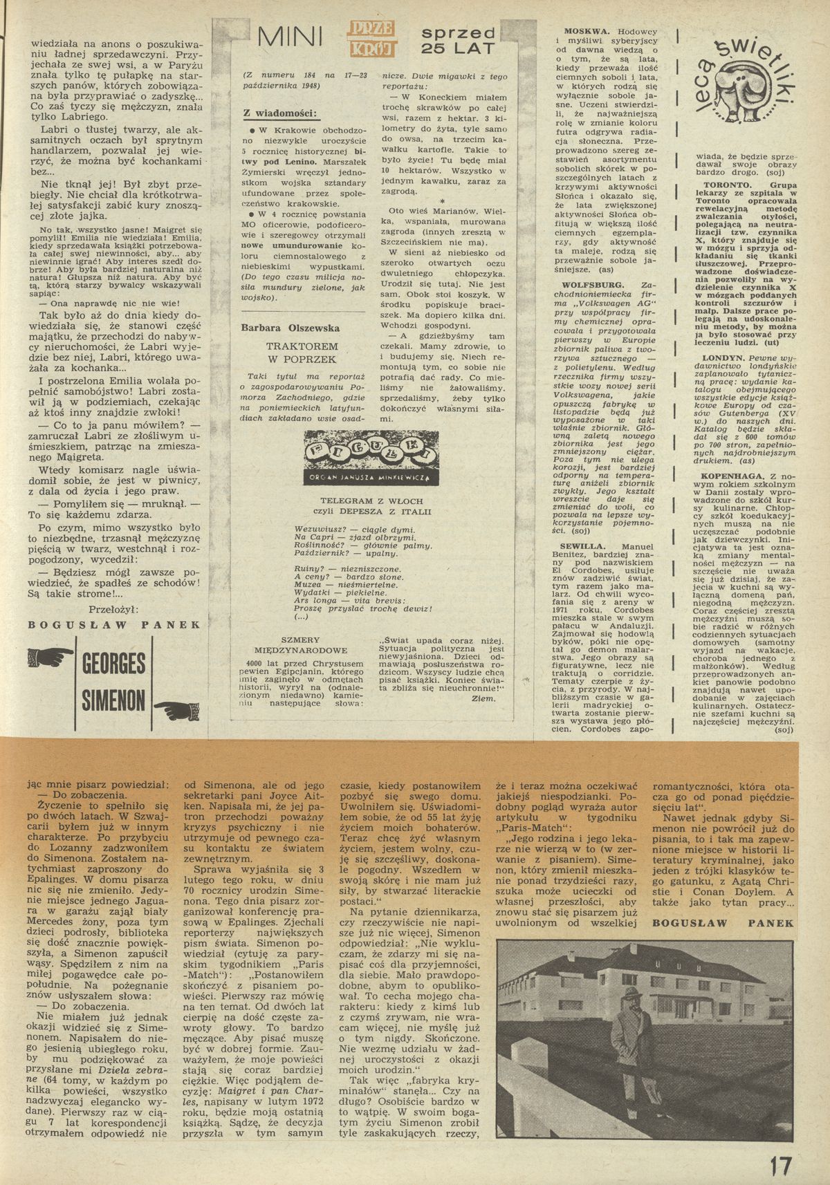 Archiwum / Różności nr 1489 (42/1973) 35/45 Podziel się Tytuł Mini Przekrój sprzed 25 lat Kategoria Różności Artykuł z numeru 1489 (42/1973) Data wydania 21 października 1973
