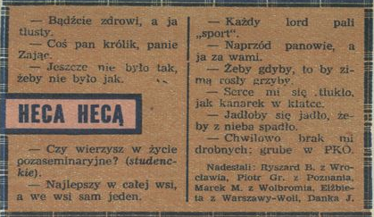 Archiwum / Heca hecą nr 1491 (44/1973) 09/46 Podziel się Tytuł Heca hecą Rubryka Heca hecą Artykuł z numeru 1491 (44/1973) Data wydania 4 listopada 1973