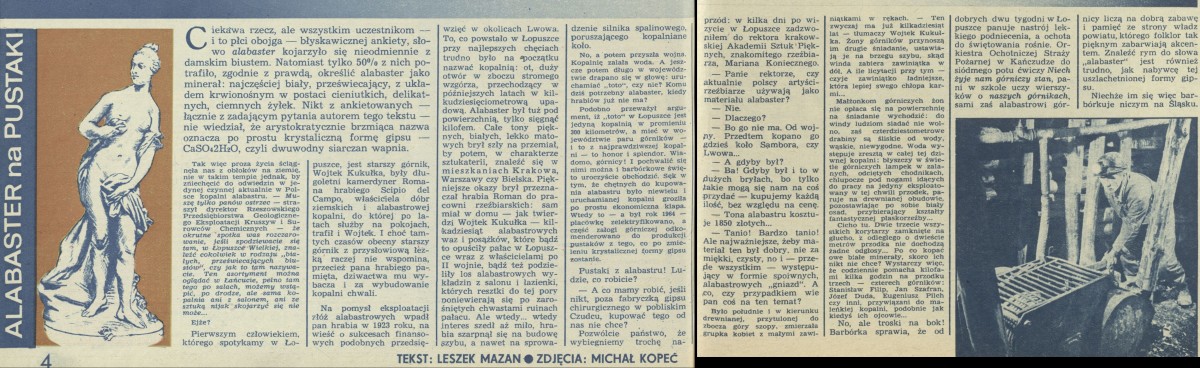 Archiwum / Artykuł nr 1495 (48/1973) 2/2 Podziel się Tytuł Alabaster na pustaki Autor Leszek Mazan Michał Kopeć Kategoria Artykuł Artykuł z numeru 1495 (48/1973) Data wydania 2 grudnia 1973 Tagi minerały górnictwo