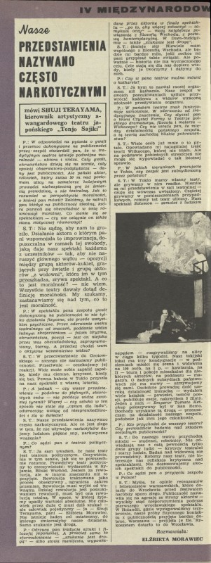 Archiwum / Wywiad nr 1492 (45/1973) 36/53 Podziel się Tytuł Nasz przedstawienia nazywano często narkotycznymi Autor Elżbieta Morawiec Kategoria Wywiad Artykuł z numeru 1492 (45/1973) Data wydania 11 listopada 1973 Tagi teatr