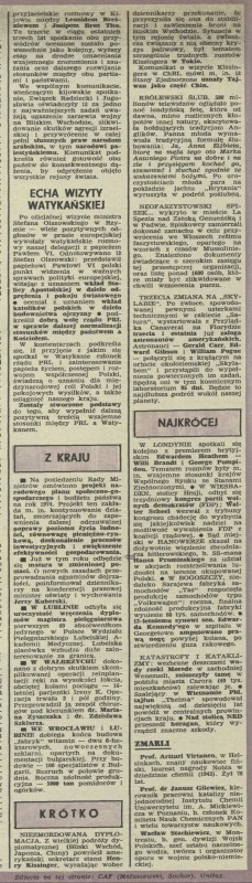 Archiwum / Krótko nr 1494 (47/1973) 62119/123969 Podziel się Tytuł Krótko Rubryka Krótko Artykuł z numeru 1494 (47/1973) Data wydania 25 listopada 1973