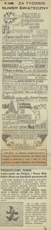 Archiwum nr 1497 (50/1973) 1/1 Podziel się Tytuł Za tydzień numer świąteczny Artykuł z numeru 1497 (50/1973) Data wydania 16 grudnia 1973