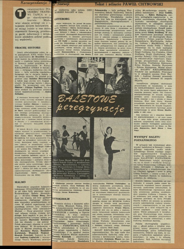 Archiwum / korespondencja własna "Przekroju" nr 1497 (50/1973) 26/64 Podziel się Tytuł Baletowe rezygnacje Autor Paweł Chynowski Rubryka korespondencja własna "Przekroju" Artykuł z numeru 1497 (50/1973) Data wydania 16 grudnia 1973 Tagi Szwecja teatr