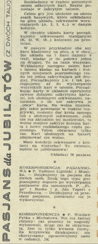 Archiwum / Rozrywka nr 1500 (01/1974) 169/248 Podziel się Tytuł Pasjans dla jubilatów Kategoria Rozrywka Artykuł z numeru 1500 (1/1974) Data wydania 6 stycznia 1974 Tagi pasjans jubilat