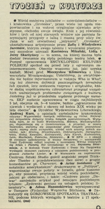 Archiwum / Tydzień w kulturze nr 2087 (23/1985) 85719/123969 Podziel się Tytuł Tydzień w kulturze Rubryka Tydzień w kulturze Artykuł z numeru 2087 (23/1985) Data wydania 9 czerwca 1985