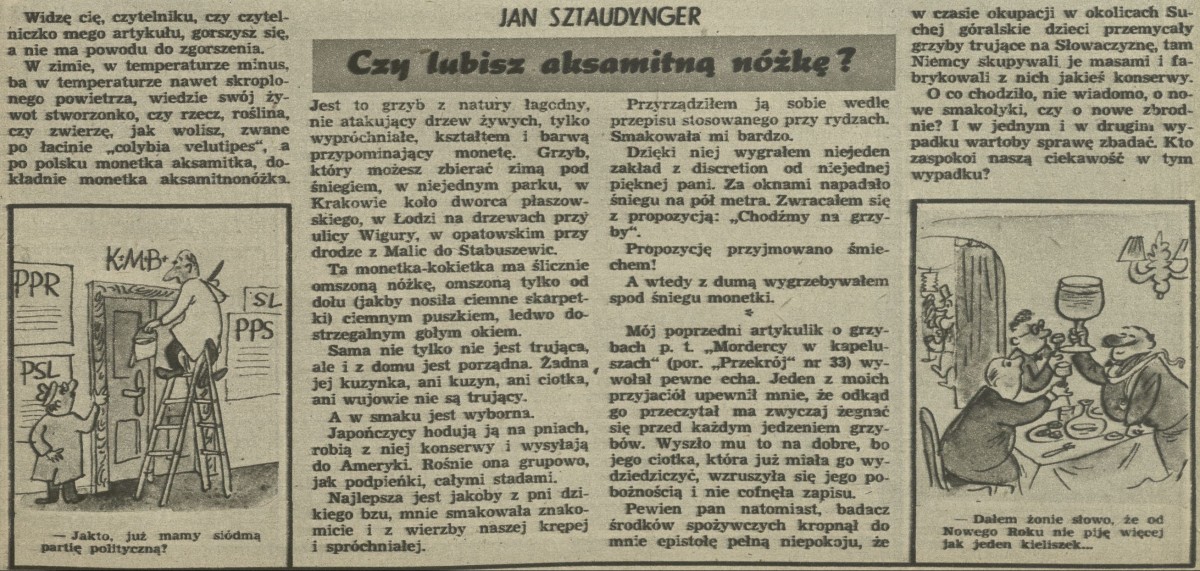 Archiwum / Artykuł nr 39 (01/1946) 03/70 Podziel się Tytuł Czy lubisz aksamitną nóżkę? Autor Jan Sztaudynger Kategoria Artykuł Artykuł z numeru 39 (1/1946) Data wydania 10 stycznia 1946 Tagi monetka aksamitna Płomiennica zimowa grzyb