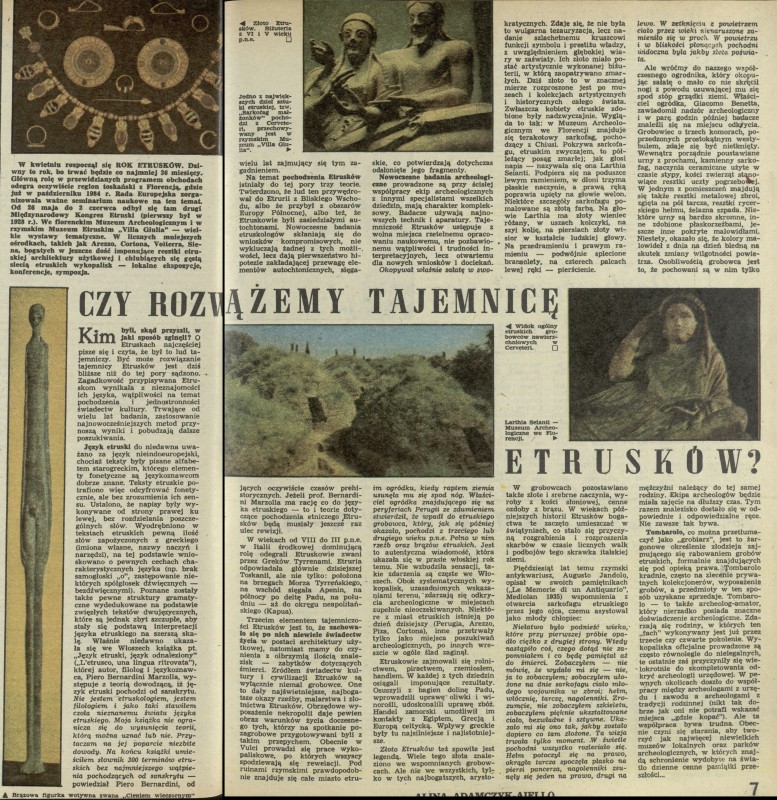 Archiwum / Artykuł nr 2090 (26/1985) 2/4 Podziel się Tytuł Czy rozwiążemy tajemnicę Etrusków? Autor Alina Adamczyk-Aiello Kategoria Artykuł Artykuł z numeru 2090 (26/1985) Data wydania 30 czerwca 1985 Tagi Rok Etrusków Etruskowie Etruria Włochy Italia antropologia archeologia