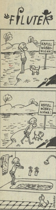 Archiwum / Profesor Filutek nr 2090 (26/1985) 32/51 Podziel się Tytuł Prof. Filutek Autor Zbigniew Lengren Rubryka Profesor Filutek Artykuł z numeru 2090 (26/1985) Data wydania 30 czerwca 1985 Tagi żart rysunkowy pies Filuś zakaz kąpiel