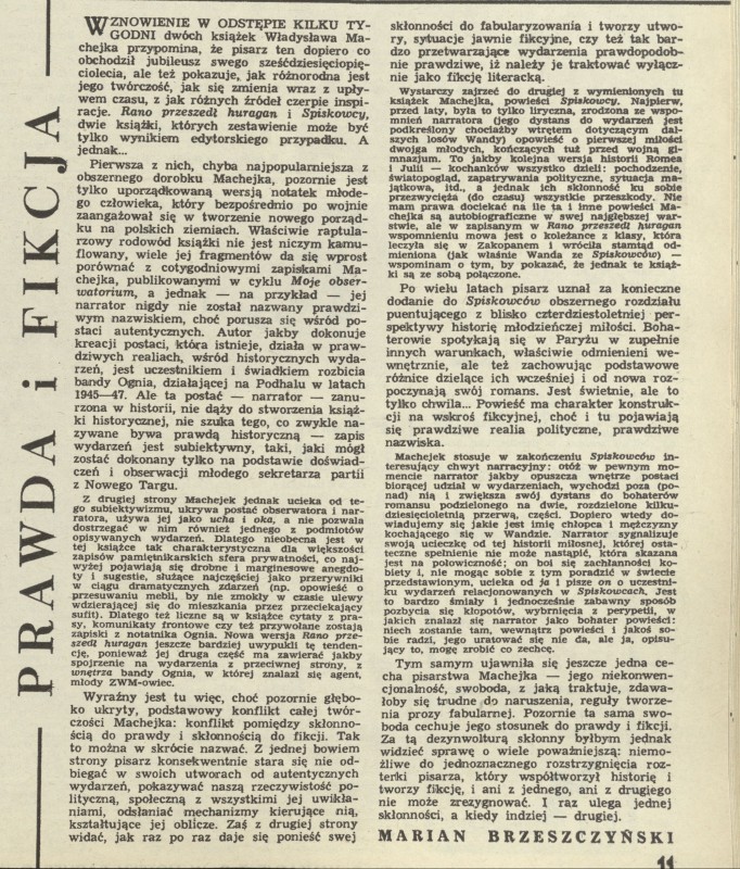 Archiwum / Książki nr 2092 (28/1985) 08/17 Podziel się Tytuł Prawda i fikcja Autor Marian Brzeszczyński Rubryka Książki Artykuł z numeru 2092 (28/1985) Data wydania 14 lipca 1985 Tagi Machejek