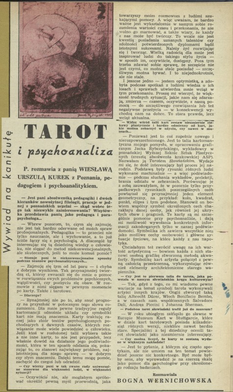 Archiwum / Rozmowy „Przekroju” nr 2095 (31/1985) 207/378 Podziel się Tytuł Tarot i psychoanaliza Autor Bo Wer Rubryka Rozmowy „Przekroju” Artykuł z numeru 2095 (31/1985) Data wydania 4 sierpnia 1985 Tagi tarot