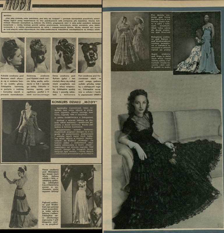 Archiwum / Moda nr 103-4 (13-14/1947) 42/64 Podziel się Tytuł Moda Rubryka Moda Artykuł z numeru 103-4 (13/1947) Data wydania 30 marca 1947 Tagi moda damska fryzury horoskop konkurs działu mody