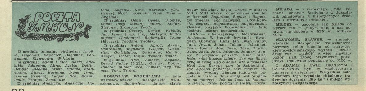 Archiwum / Poczta imion nr 1498 (51/1973) 35/1084 Podziel się Tytuł Poczta imion Rubryka Poczta imion Artykuł z numeru 1498 (51/1973) Data wydania 23 grudnia 1973