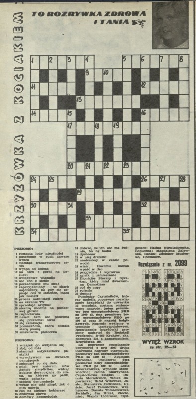 Archiwum / Krzyżówka z kociakiem nr 2100 (36/1985) 86222/123969 Podziel się Tytuł Krzyżówka z kociakiem Rubryka Krzyżówka z kociakiem Artykuł z numeru 2100 (36/1985) Data wydania 8 września 1985