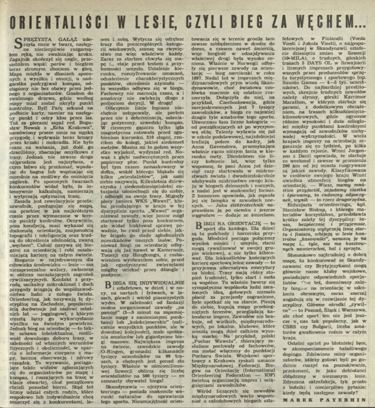 Archiwum / Sport nr 2100 (36/1985) 86225/123969 Podziel się Tytuł Orientalisci w lesie, czyli bieg za węchem... Autor Marek Payerhin Rubryka Sport Artykuł z numeru 2100 (36/1985) Data wydania 8 września 1985 Tagi sztafeta sprint bieg biegi na orientację